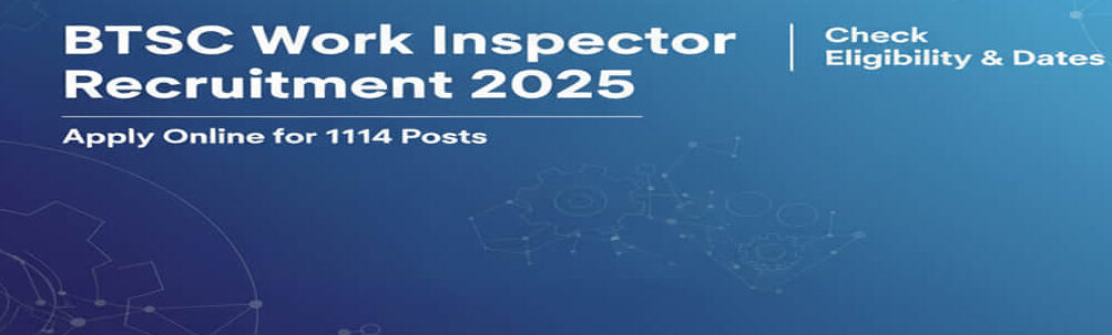 BTSC Work Inspector Recruitment 2025: Apply Online for 1114 Posts — Check Eligibility & Dates:– बिहार तकनीकी सेवा आयोग (BTSC) ने अधिसूचना जारी की है कि वर्क इंस्पेक्टर (Work Inspector) पदों के लिए कुल 1114 रिक्तियाँ भरी जाएँगी। ऑनलाइन आवेदन प्रक्रिया 10 अक्टूबर 2025 से प्रारंभ होगी और अंतिम तिथि 10 नवंबर 2025 है। नीचे दी गई पोस्ट में आपको योग्यता, आयु सीमा, वेतन, चयन प्रक्रिया, आवेदन लिंक एवं अन्य सभी महत्वपूर्ण जानकारी मिलेगी।